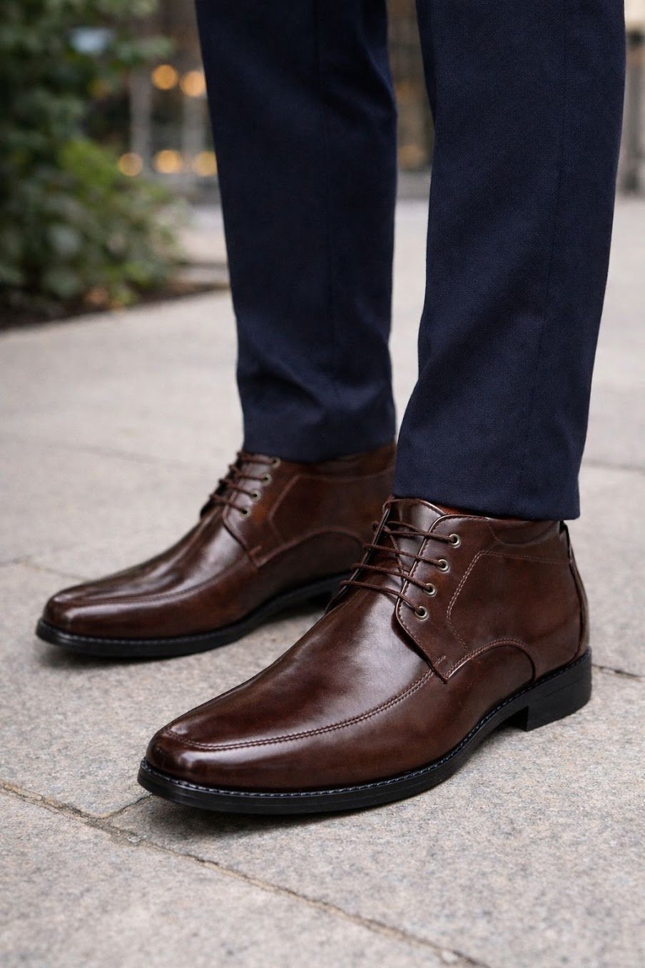 Height increasing formal shoe is gold standard range of tall up. Executive Ankle Shoe is Handcrafted Lace up Shoe. It is made up of original genuine leather with a good product finishing. it increase height upto 4 inches with it’s hidden height increase technology. tallup height boosting shoe are handcrafted and madup of genuine leather. consist inner linning of leather and TPR sole is used for providing durable shoe.