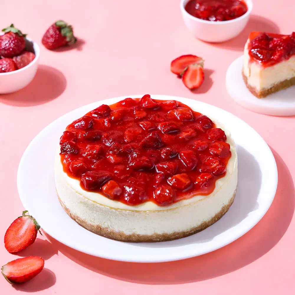Our Strawberry Bloom Cake (Classic Strawberry) is a beautifully balanced cake made for strawberry lovers. Featuring light vanilla sponge layers, this cake is filled with smooth strawberry-infused cream and finished with a glossy strawberry glaze. Mildly sweet with a refreshing fruity note, it’s perfect for birthdays, anniversaries, and cheerful celebrations where you want something light yet indulgent.